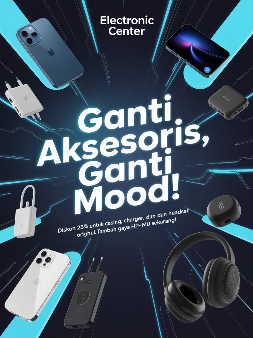 Bosan dengan tampilan HP yang itu-itu saja? Saatnya upgrade gayamu! Dapatkan diskon spesial 25% untuk semua aksesoris original, termasuk casing trendi, charger super cepat, dan headset dengan kualitas suara jernih. Tambah gaya HP-mu sekarang juga dan rasakan mood baru yang lebih semangat!