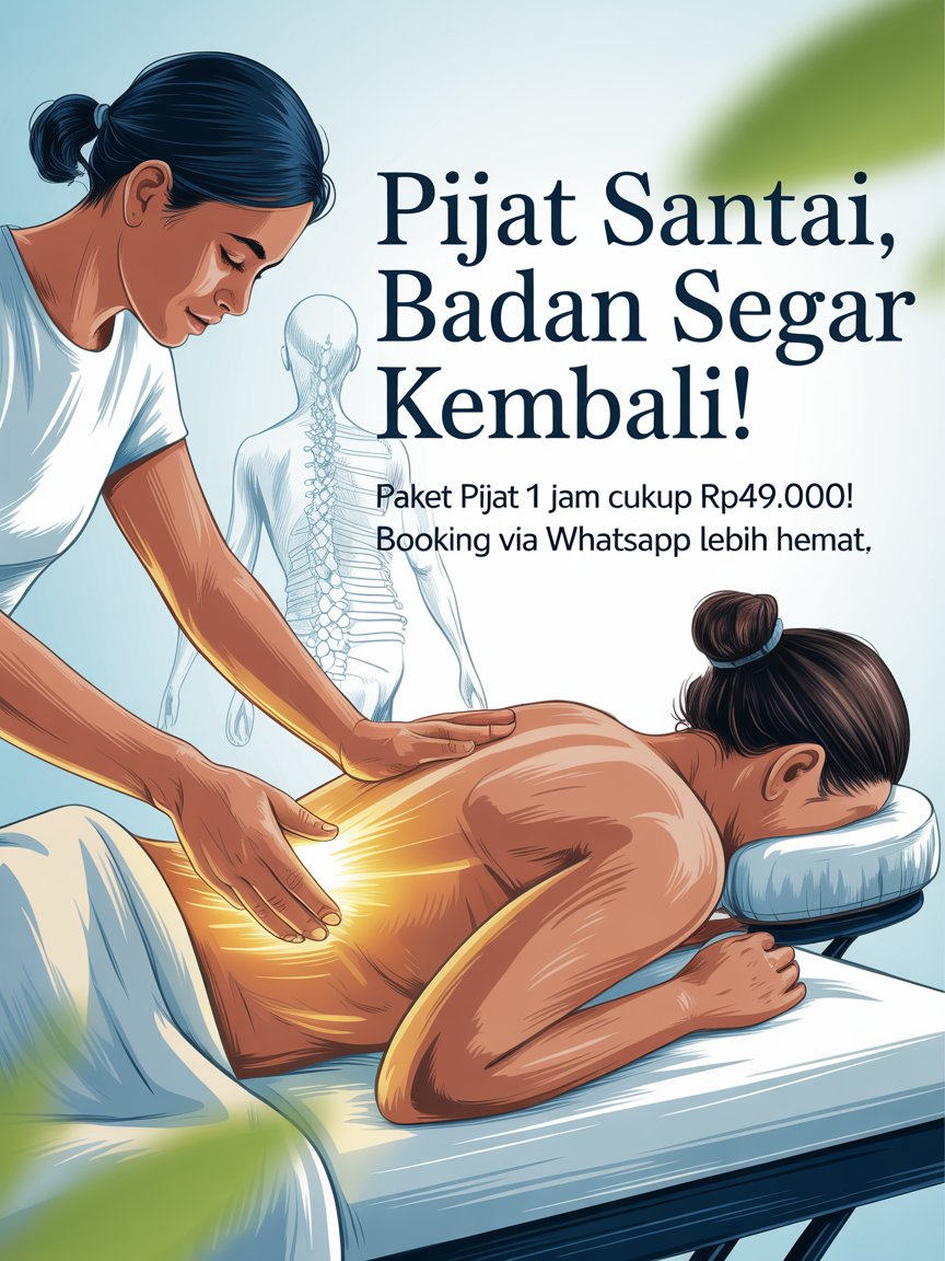 Lelah setelah seharian beraktivitas atau stres karena tugas menumpuk? Saatnya memanjakan diri Anda! Nikmati paket pijat terapi selama 1 jam penuh dengan harga spesial hanya Rp49.000. Terapis profesional kami siap membantu mengembalikan kesegaran tubuh dan pikiran Anda.