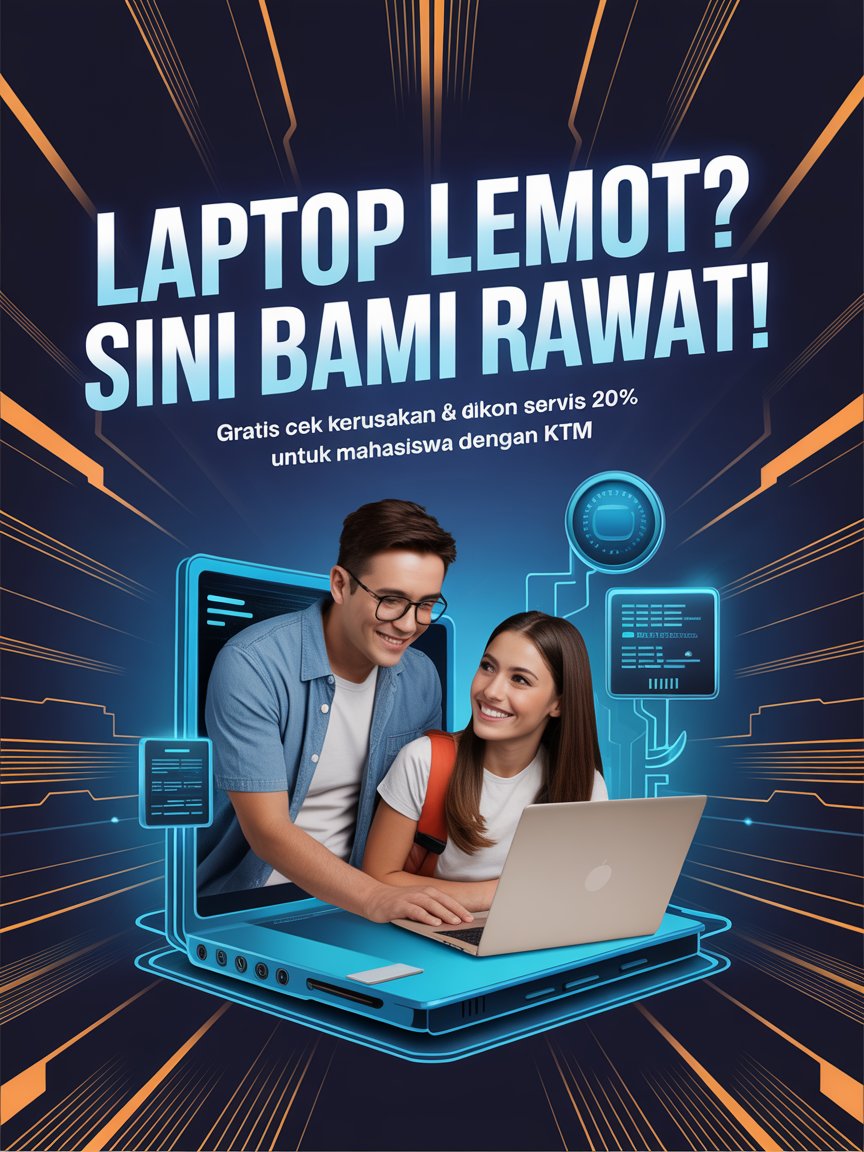 Jangan biarkan laptop lemot menghambat skripsimu! Bawa laptopmu ke Benerin Dong Service di Plaza UNY untuk mendapatkan pengecekan kerusakan GRATIS. Khusus untuk mahasiswa, tunjukkan Kartu Tanda Mahasiswa (KTM) aktif dan dapatkan diskon servis sebesar 20%. Tim profesional kami siap membuat laptopmu ngebut lagi!